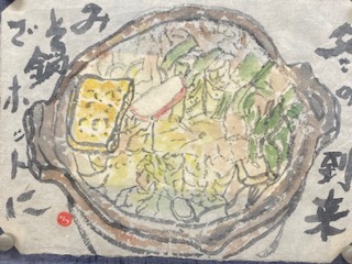 *20年ほど前に描いた鍋焼きうどんの絵手紙。ファイルから出てきました。少し色は薄れて来ていますが、なかなかいい感じだと思い掲載させて頂きました。