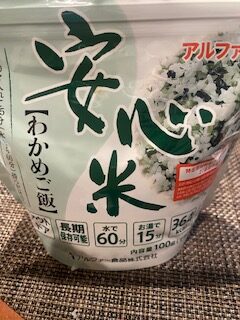 町内会での避難訓練の際に配られたアルファ化米の「安心米」が昨年の物もあって一度試しに食べて見ないとと思い朝ごはんにお湯を沸かして決められた線まで熱湯を入れて15分待って開けてみてびっくりでした。感想は「美味しい!」でした。わかめご飯でしたが、ふっくらした炊きたてのようで、安心しました。災害の際は使えますが、熱湯を用意することが出来れば良いですが、お水からでも時間は長く掛かりますが、ご飯になるそうです。熱湯だとホカホカのご飯になります。これを使わなくてはならない事態はできるだけ来ない方がいいのですが。