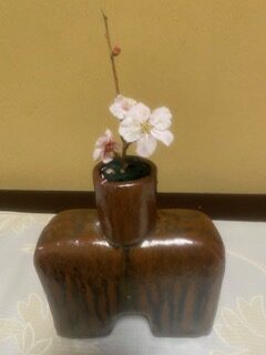 1年の催しが次々訪れてうっかりすると忘れちゃうことがあるのですが、冬季オリンピックの感動な試合が多くあっという間に2月の最終日。すぐにお雛祭りの日になっちゃうと驚き、日曜の今日、飾っていい日なのかも調べず飾りました。ホッとしています。庭の鉢植えの紅梅が満開に咲いたので一枝切手私が作ったへんてこな花器に入れてひな人形の横に飾ってあげました。以外に可愛くて桃の花の代わりになりました。