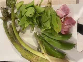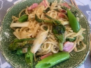 ひな祭りの今日は冷たい雨に成ってしまいましたが、季節は春。先日テニスクラブのオーナーさんからコートの周りに沢山出てきた「蕗の薹」を頂戴しました。一度は天ぷらにして早速、何とも言えない少し苦み味を楽しみましたが、今日はちらし寿司の代わりに春の焼きそばを焼いてみました。材料は蕗の薹、ウド、スナップエンドウ、にベーコンを使いました。バターでベーコンと野菜を炒め、麺を投入。お酒を使おうと思ったのですが、手元に無かったので、お水を掛けてちょっと蓋をして蒸して白だしを掛けて出来上がり。上品な一品になりました。白だしのお陰で蕗の薹の味が良くわかり大人っぽい塩焼きそばになりました。後に、茹でシラスをトッピングしてみましたが、いまいち合いませんでした。